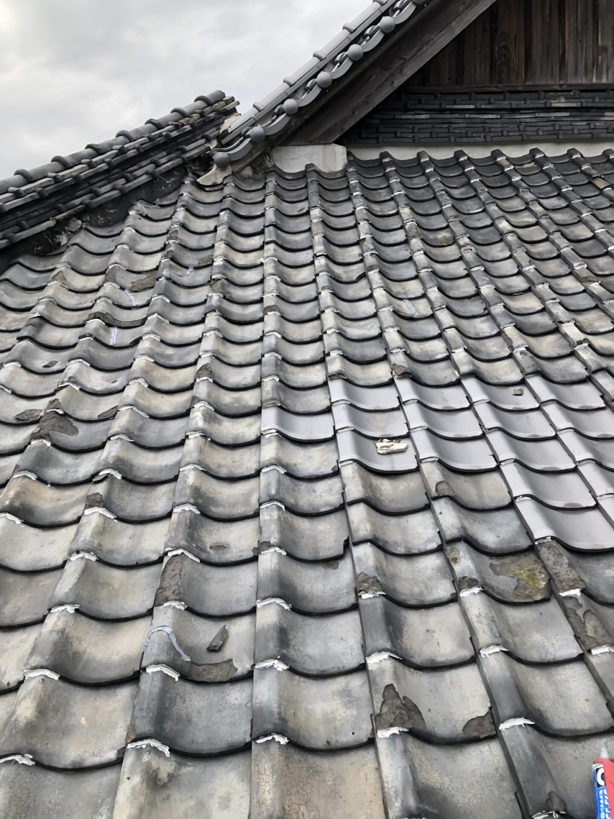現状瓦 (既設瓦経年劣化割れ、剝離のため雨漏れ)