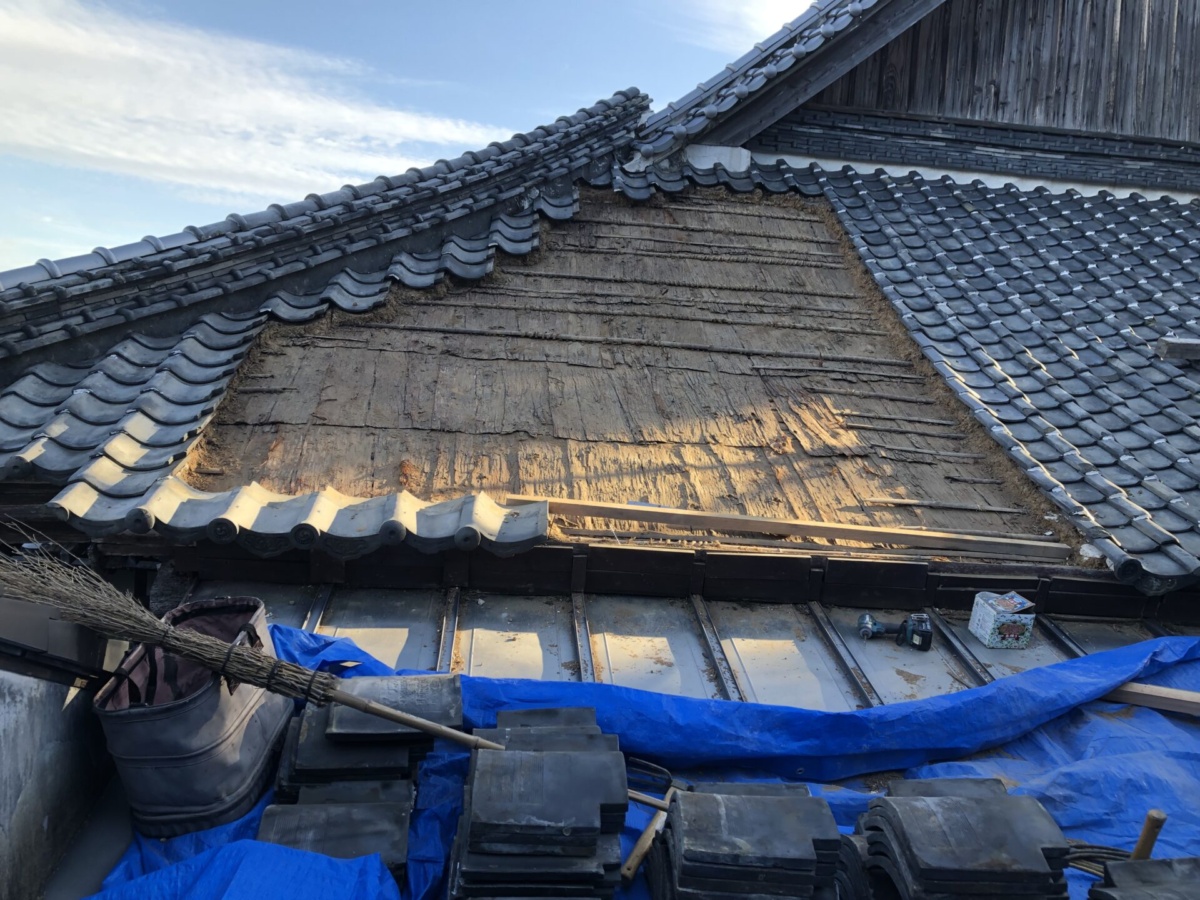 既設瓦、屋根土、杉皮 撤去処分
